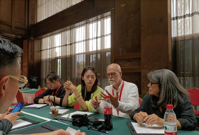 张老师参与了中外高校教师的分组讨论。本组由西安理工大学艺术与设计学院影像动画系主任李小舟主持,美国纽约州雪城市锡拉丘兹大学(Syracuse University,简称:美国雪城大学)纽豪斯公共传播学院视觉传播系教授布鲁斯·斯特朗(Bruce Strong)&克劳迪亚·斯特朗夫妇作为外国高校特邀嘉宾,中北大学、西安理工大学、贵州师范大学、大连工业大学、苏州工艺美术职业技术学院、长春光华学院等多家高校教师共同参与。讨论问题涉及:1)关于国内外高校影像创作人才课程培养方案建设与创新的各校经验;2)关于传统影像技术古典摄影工艺实践作为专业基础课程的各校经验;3)AI技术应用于影像创作教学的机遇与挑战;4)中外高校摄影教学交流经验;5)美国雪城大学The Alexia基金项目等等。张奋飞老师介绍了基于平遥大展建立的中法高校在地艺术介入教学交流项目——“平遥工作坊”,提出中外高校建立合作交流的执行问题与合作意向。布鲁斯·斯特朗教授为此回应并推介了他负责的美国雪城大学美国亚力克夏基金会(The Alexia),鼓励中国学生报名参与。