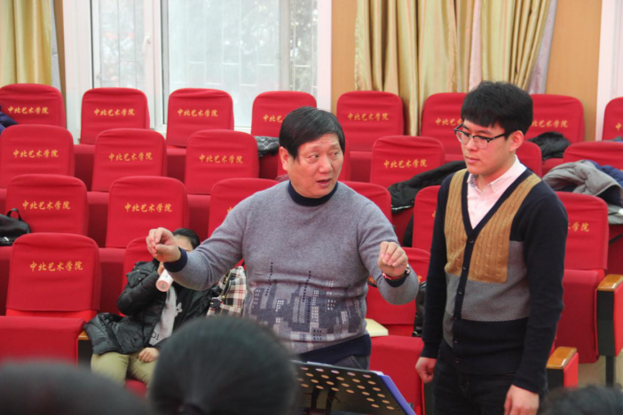 任宝平教授提出:“合唱指挥专业学生应建立正确的合唱音响概念、学好专业理论知识、具备多学科文化素养”等。并以此为题进行了学术讲座,要求学生多听、多唱、多实践。讲座结束后对合唱指挥专业研究生进行一对一的指挥技巧辅导,又对合唱团的排练准备工作、发声、作品处理等方面进行辅导。任宝平教授认真严谨的态度,深深地打动着每一位同学。在一上午的学习中,同学们受益匪浅并在合唱音响及合唱指挥理论上有了新的提高。