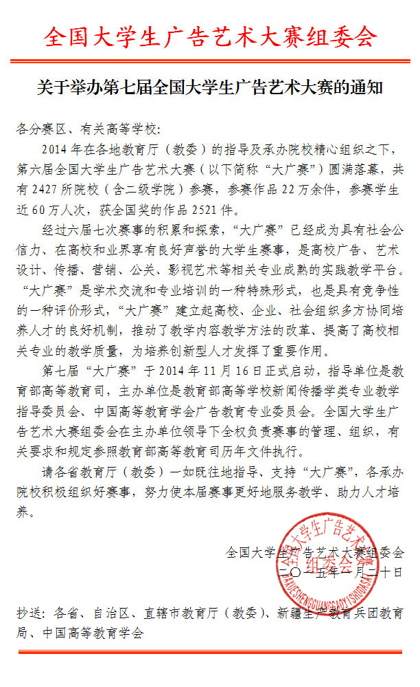 2015第七届全国大学生广告艺术大赛通知