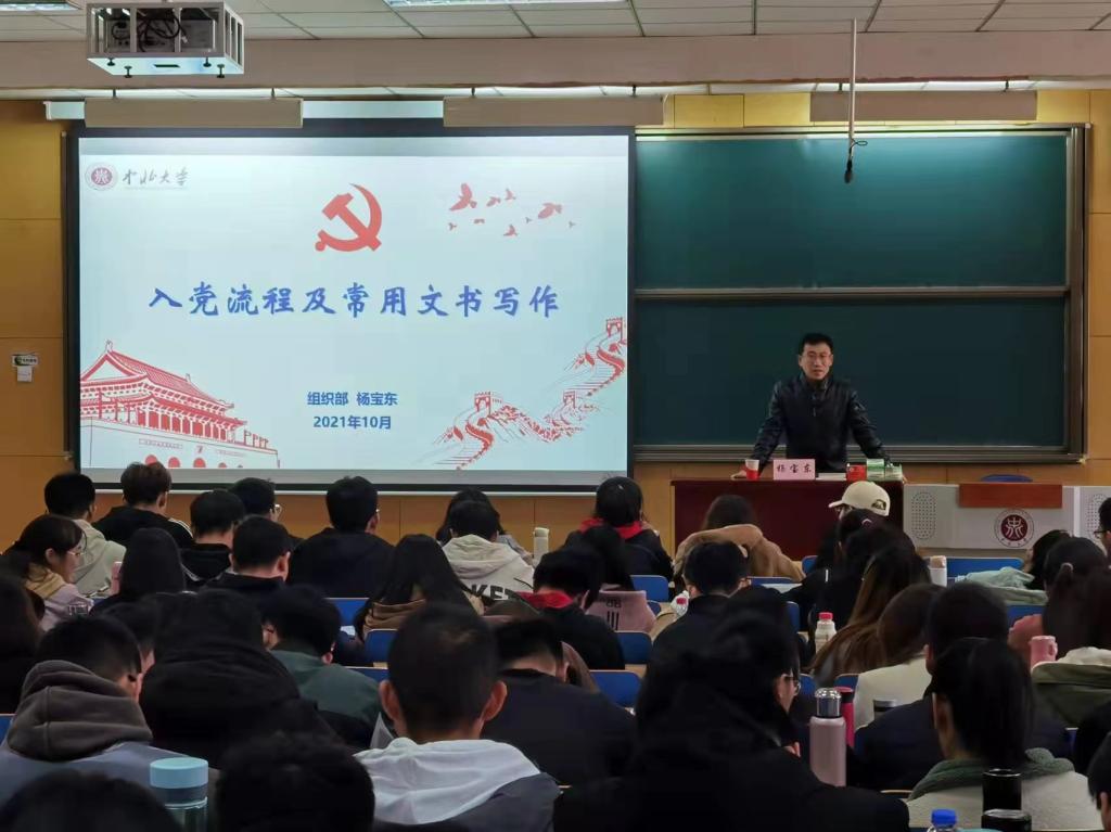典礼结束后,由郭玲霞老师为全体学员讲授本次院党课的第一课--中国共产党的奋斗历程和优良传统,在接下来的两天时间里,杜苇老师、栗秀萍老师、曹凤才老师、田维飞老师、杨宝东老师、分别为从党的宗旨、党的组织原则和纪律、党的光辉历程、端正入党动机、入党手续及常用文书写作等几个方面详细进行了介绍,段义权老师和阚先学老师为大家解读了习近平总书记“七一”重要讲话精神及坚持中国特色社会主义的历史必然性。
