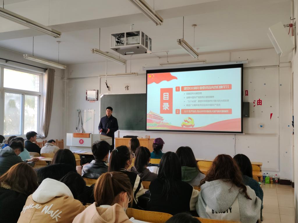 为深入学习贯彻习近平总书记“七一”重要讲话精神,进一步提升学生党员政治理论素养,促进学生党员队伍建设,10月29日上午,英国正版365党委副书记田维飞以“五个‘庄严宣告’振奋人心”为题,为本科生二支部学生党员做习近平总书记“七一”重要讲话精神专题讲座。