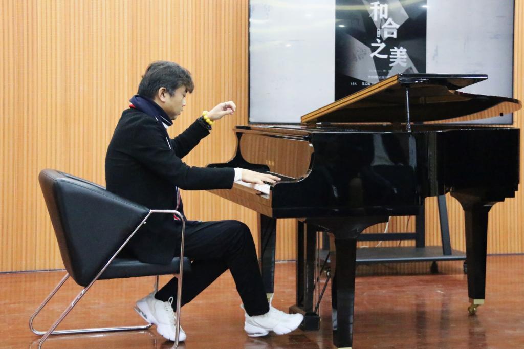 首先通过陆晨曦老师的讲解,同学们懂得了本次沙龙的主题“和合之美”就是将各个乐器的优点结合在一起演奏的室内音乐。为了让同学们更好地理解室内音乐,温成皓、陆晨曦和张鹏三位老师给同学们合作演奏了一曲《查尔达什》,他们默契十足的表演引发了热烈的掌声。随着交流的深入,温成皓老师通过举例的方式,使同学们不仅知道了小提琴的由来,更懂得了没有人可以随随便便成功的道理。刘昱西老师和王威龙老师分别向同学们讲解了小提琴的拉弹技法和完整的音乐教育。这让同学们在欣赏室内乐时除了聆听乐曲的美妙旋律之外,还可以品味演奏家们在音色、节奏以及力度等方面的默契配合。最后,王琼老师演示钢琴的基本弹奏方法,让零基础的同学都可以轻松上手。