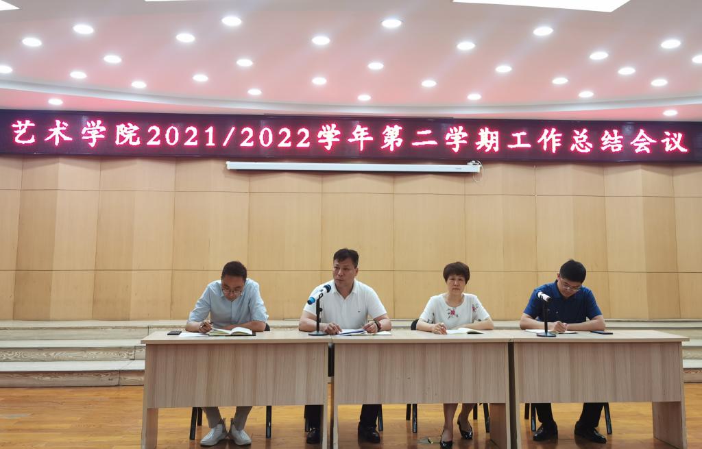 会上,王燕平院长围绕学校中心工作任务进行了全面总结,并对学院下一步的工作任务和目标进行全面部署,重点梳理了以下工作内容:一是利用暑假期间做好艺术档案馆的装修建设工作,为专业学科建设起到提档升级的作用;二是做好美育教学实践平台的建设工作,以及美育实验室建设论证的相关工作;三是做好学院教师定岗定级的工作,按照公开、公平、公正的原则做好相关工作;四是加强安全稳定工作,做好疫情防控安全和网络舆情安全工作,暑假期间全体教师务必严格执行外出报备制度。最后王院长对全体教职工为学院的辛勤付出表示感谢,希望全院教职工积极进取,再接再厉,为实现学院快速发展贡献力量。