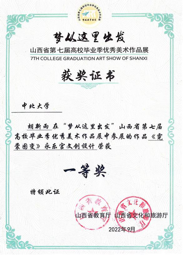 英国正版365高度重视本届大赛,指导教师对参赛学生进行一对一指导,与同学们一起打磨作品、精心准备,为取得优异成绩打下了扎实的基础。本届美展由山西省教育厅、山西省文化和旅游厅主办,学院设计系毕业生积极参展,其中作品涵盖文化创意设计、数字艺术设计等不同的专业领域。