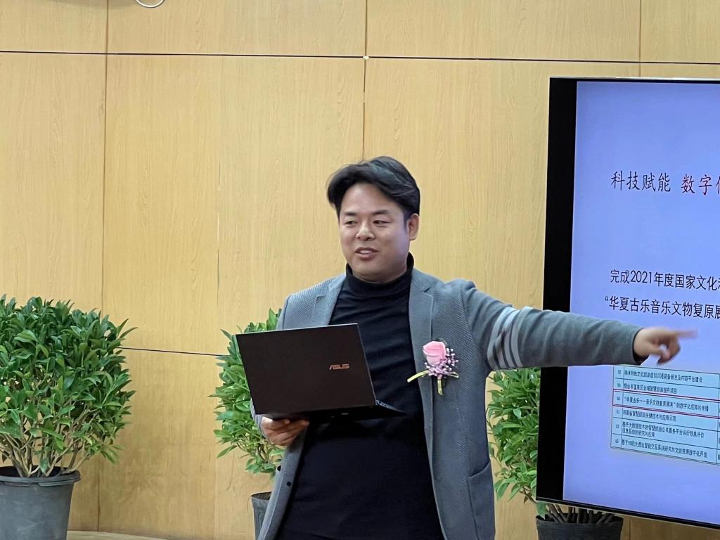 揭牌仪式结束后,进入学术研讨会主旨发言环节。原文化部非遗司副司长张兵,中北大学原副校长韩炎教授,中国艺术研究院研究员、总编辑部主任王清雷,河南博物院华夏古乐团团长、研究员霍錕,云冈研究院研究员赵昆雨5位发言人分别以《从“大艺术”维度窥究晋地音乐文物的先进性》、《现代信息技术助力音乐文物保护与挖掘》、《从音乐考古谈“创新展览展示,推动文物活化利用”》、《音乐文物研究与活化利用刍议——以河南博物院华夏古乐团为例》《戎华兼采,鲜卑当歌——北魏平城时代乐舞文化中的鲜卑因素》为题展开深度讨论并分享观点。