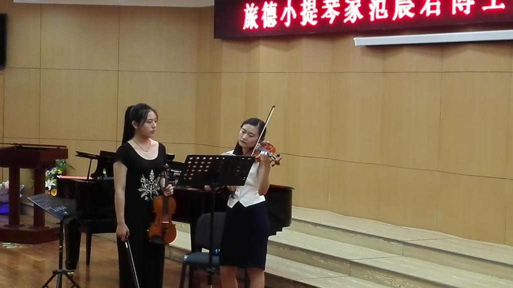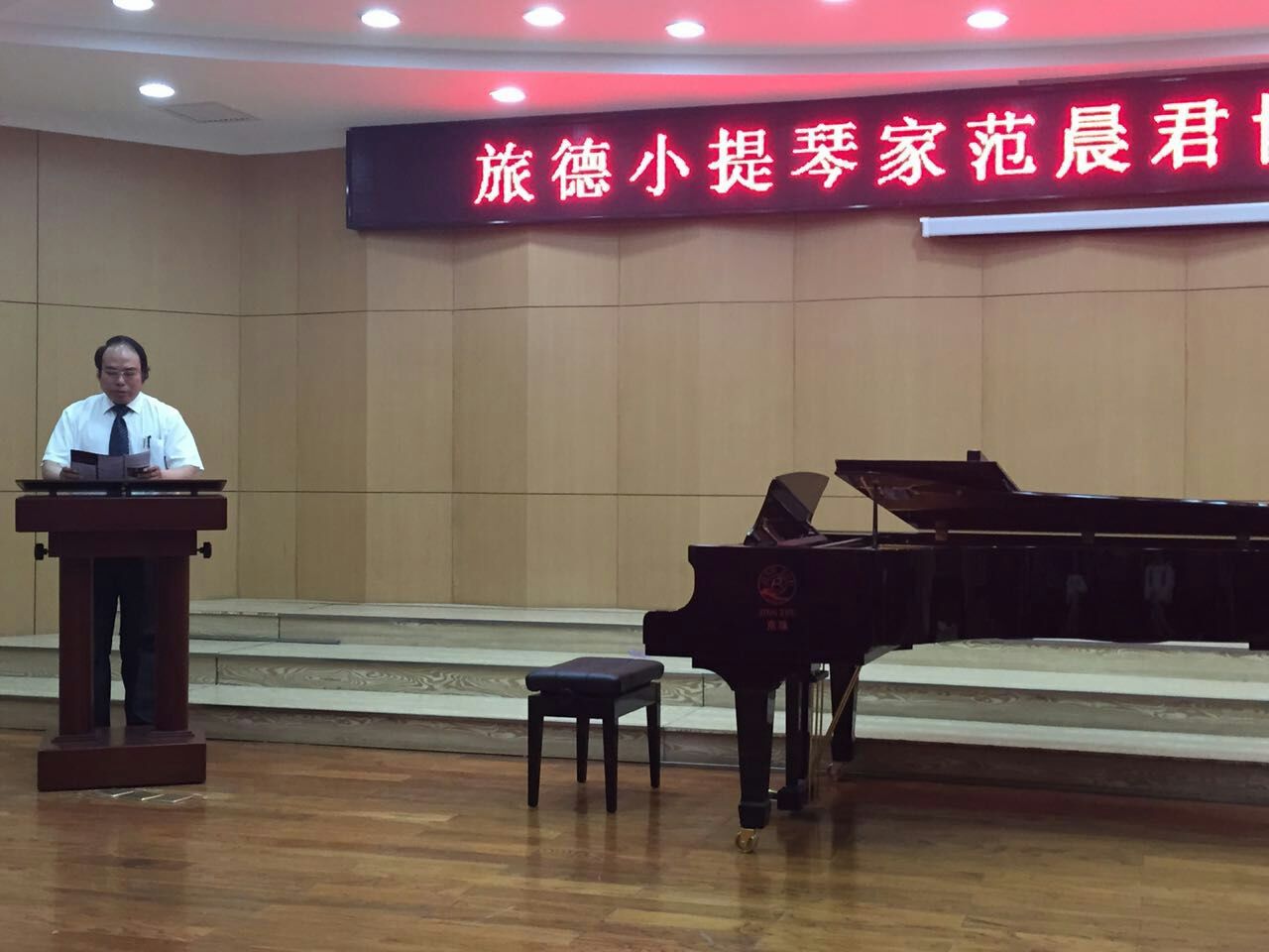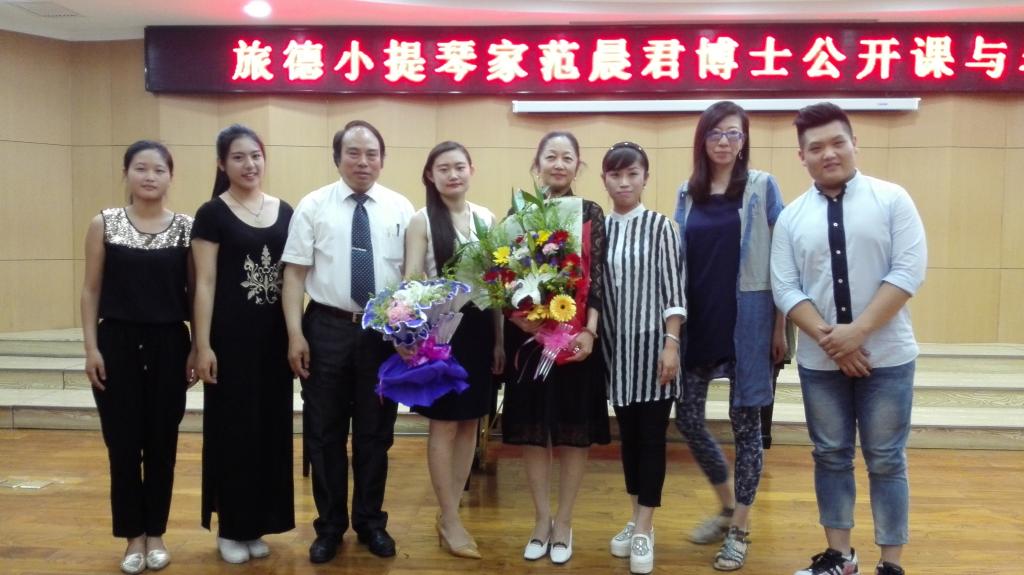 活动开始前由主持人圆号演奏家、我院学科管理部主任李斌老师代表英国正版365全体领导致欢迎词并对范老师无私行动表示真诚地感谢!为本次活动提供钢琴伴奏的是本院教师范晓荣。场务工作由李楠、杨娟两位老师担任。也感谢范晨君的母亲山西省交响乐团乐队首席小提琴演奏家武婉英老师为女儿的行动提供大力支持。
