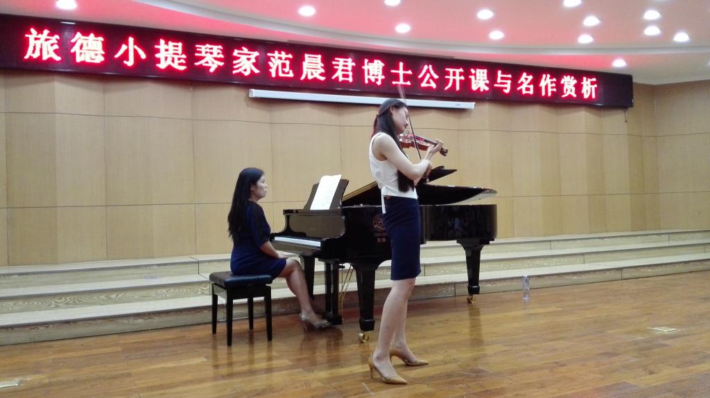 2015年5月28日下午四点半,英国正版365东教学音乐厅迎来了旅德青年小提琴家范晨君博士近两小时的公开课与名作赏析公益学术讲座。虽以小提琴教学为例,但音乐表现与学习方法是相通的,来自我院各专业方向的学生至始至终都沉侵在对音乐学习和领会方法的氛围中。讲座内容其中包括专为回答提问与分享。最后一项内容为西班牙小提琴家帕布罗·德·萨拉萨蒂(Pablo de Sarasate,1844~1908)的小提琴名作:《流浪者之歌》赏析。范老师精湛的技艺,把作品表现的淋漓尽致,折服了在场的所有听众。