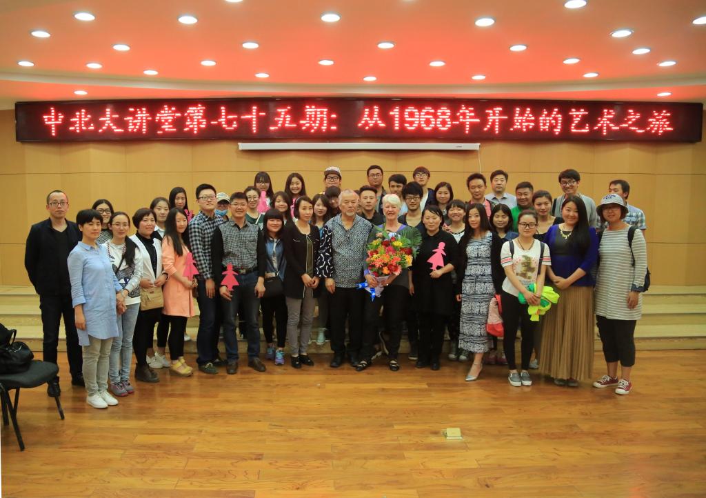 5月6日下午15:00,中北大讲堂第七十五期在12号楼东排练厅举行,世界著名陶艺家小路光男教授携夫人共同出席。本期讲座的主题为“从1968年开始的艺术之旅”。夫妇二人虽已年过花甲,却保持着年轻朝气的形象,在场师生一开始就被他们的态度感染了。