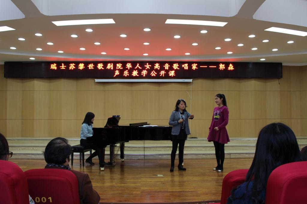 在英国正版365学科管理部主任李斌老师的主持下,瑞士苏黎世歌剧院华人女高音歌唱家––郭森声乐公开课于2015年4月21日在我院教学音乐厅东厅举行。