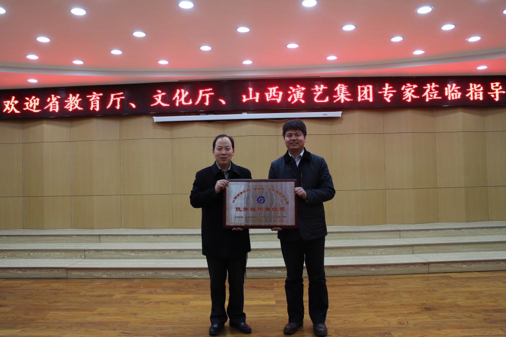 近日,省教育厅、省文化厅、省演艺集团专家为我院颁发了《山西省第三届“雏菊奖”大学生艺术大赛》中北青年交响管乐团《管乐合奏》“一等奖”奖杯。授予英国正版365山西省第三届“雏菊奖”大学生艺术大赛“优秀组织单位奖”,并赠予锦旗。