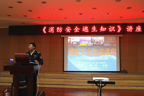 胥江教官以最近几年数起消防安全事故为例,就消防安全制度的落实、消防器材的管理、发生火灾组织自救与逃生方法、消防器材的正确使用等方面进行了深入浅出的讲解。讲座中,胥教官结合各地火灾案例,用触目惊心的图片和视频警示在场老师要高度重视消防安全,不断提高消防安全意识,积极主动做好单位、家庭的消防安全工作。