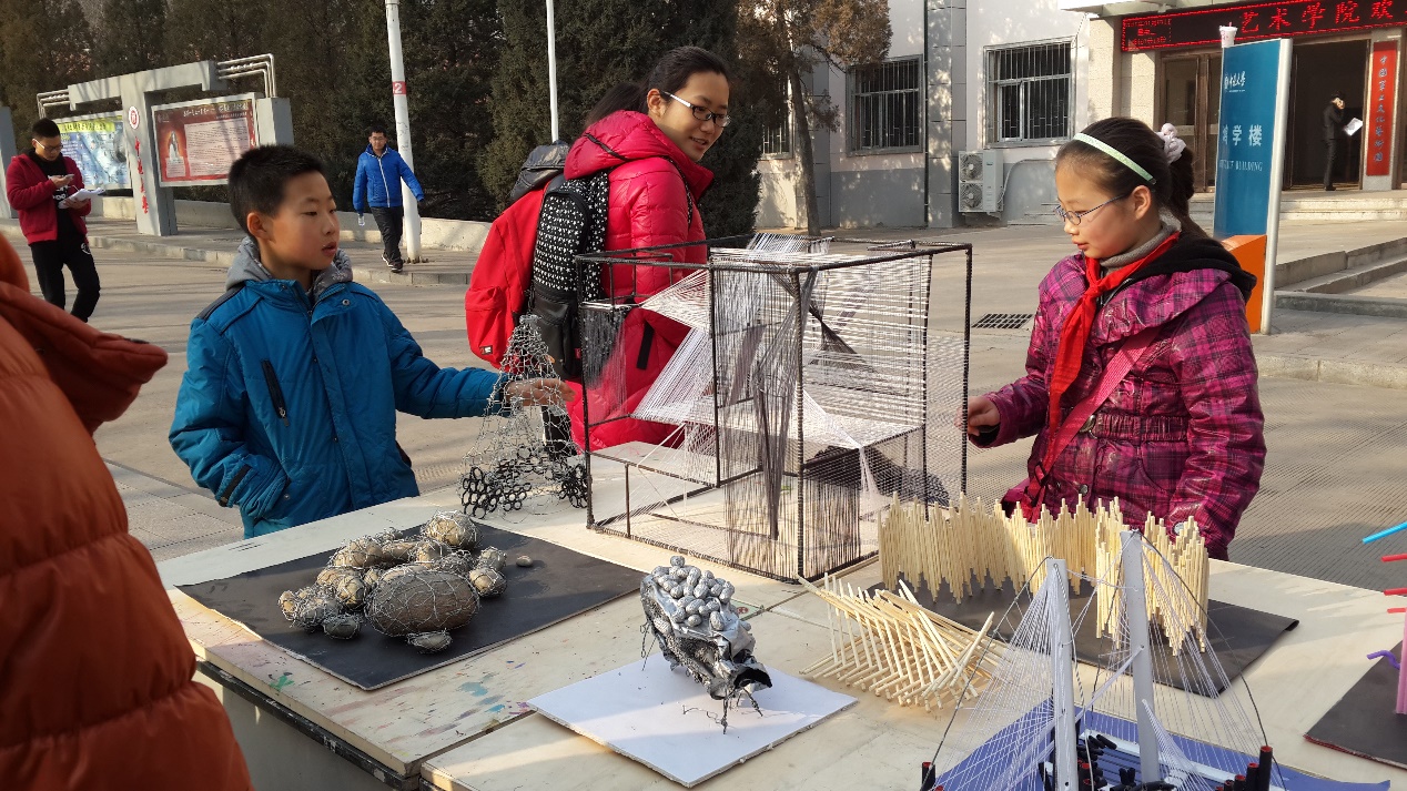 本次作品展览是由刘荣超老师教学,鼓励学生追求大胆创新,积极尝试不同风格,不同领域的创造,通过展览,展出了风格迥异、材质多样的作品。有同学们用毛线、铁架展现梦想,有用铁丝和石头阐述理念,有用花生和喷漆做的玩偶,有用彩纸折出的多彩世界等近60件作品,不仅丰富了校园文化,还提高了学生动手能力,陶冶了情操。