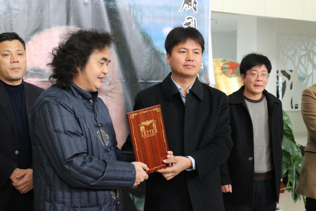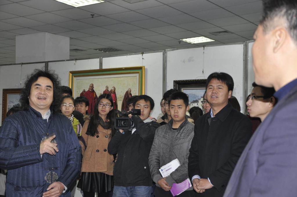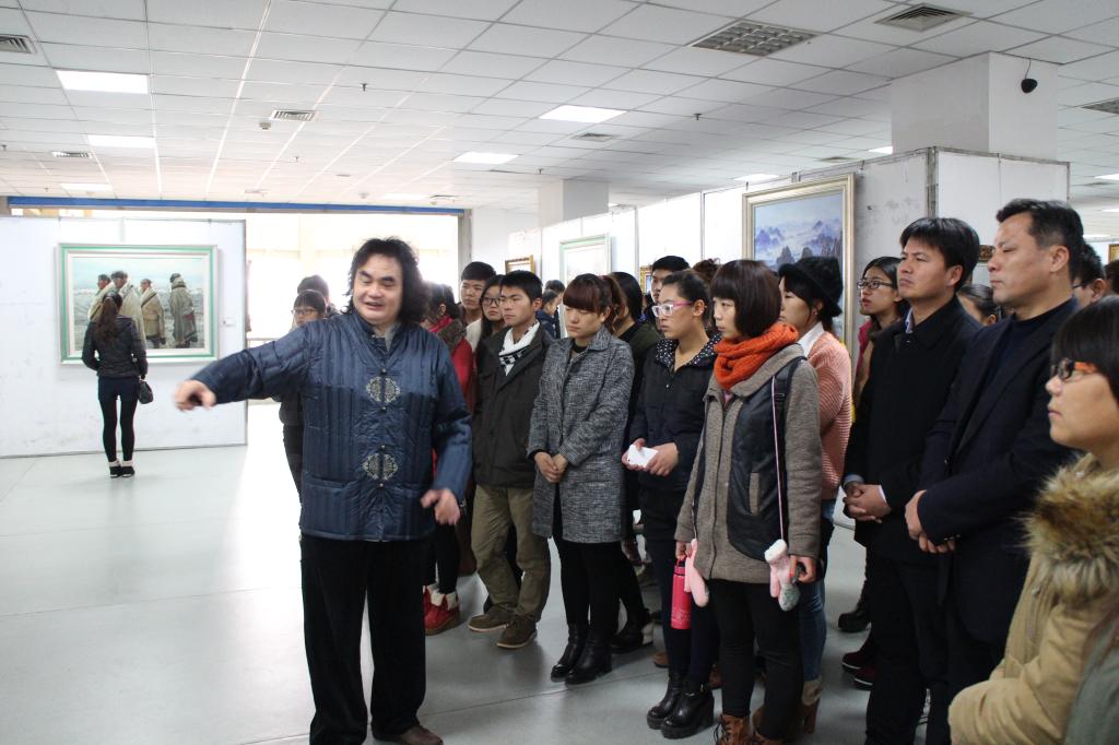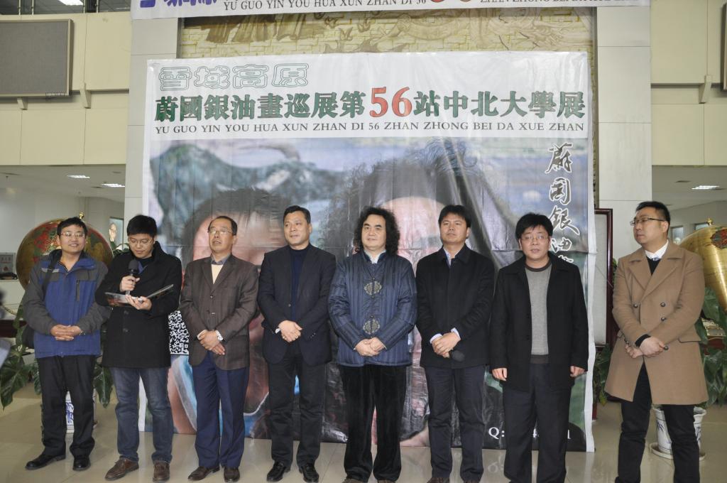 开幕式上首先由院长王燕平致辞,他对本次油画展览给予充分肯定,并指出油画展对我校公共艺术教育、艺术专业教学及活跃校园文化都起到了积极的推动作用。随后院党总支书记曹凤才为蔚国银颁发了客座教授证书。接下来蔚国银为中北大学图书馆赠送了画册,图书馆副馆长武金有也为蔚国银颁发了收藏证书。最后蔚国银对本次筹办画展的中北大学表示深深地感谢,并对他创作的油画向参观的师生做了详细生动的讲解,最后和大家一一合影留念。