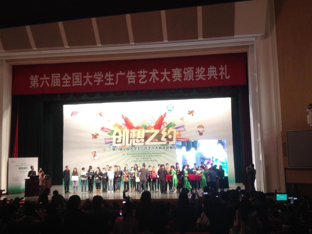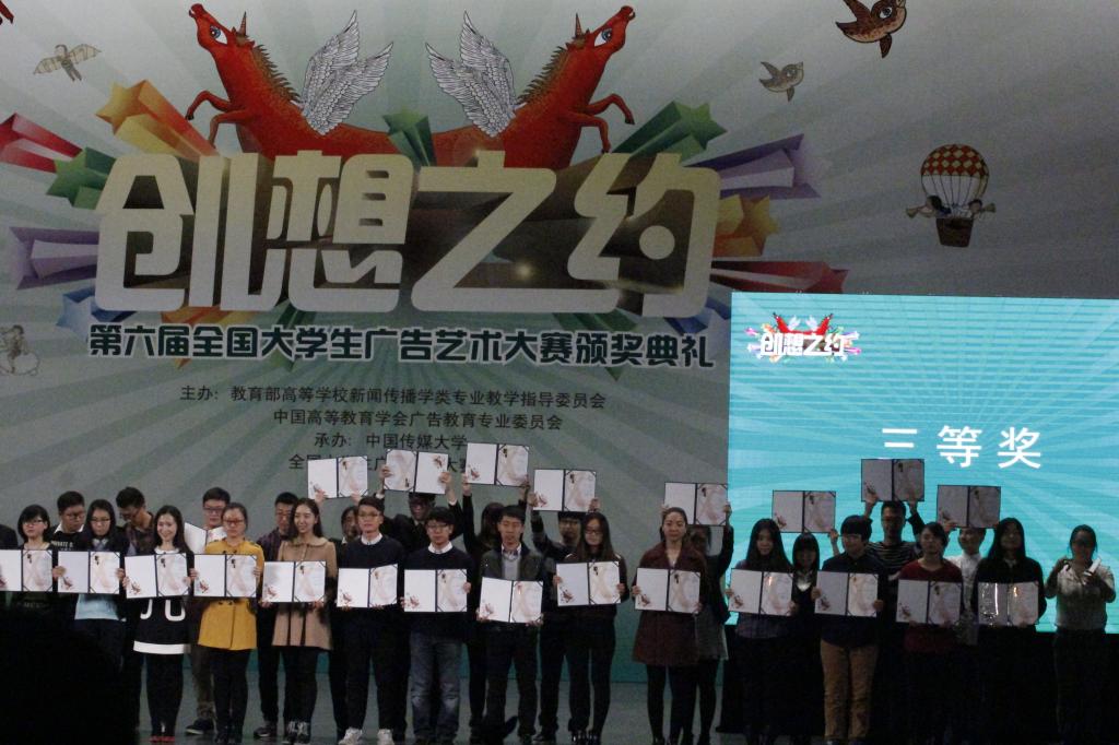 2014年11月16日,由教育部高等教育司指导的第六届全国大学生广告艺术大赛颁奖典礼在全国政协礼堂举行,本次大广赛我校英国正版365积极组织参赛,征集的作品内容丰富,有剪纸艺术、平面海报、企业LOGO、吉祥物、音频视频、文案策划共提交60余件等。最终英国正版36511100443班张颜的《我的世界因你不凡》平面海报获得全国三等奖,这是继去年以来连续两届获得全国等级奖,实现了我校参加大广赛以来历史性突破。