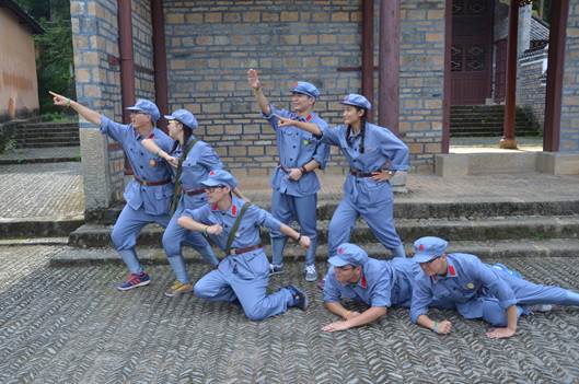本次实践活动,我校与同作为第六期学校的中央财经大学、山东大学等19所高校近300人一起进行培训调研。第一、二天基地邀请党史专家学者进行专题授课,引导我们深入学习井冈山革命斗争史和井冈山精神,同时利用井冈山及周边地区丰富的红色教育资源进行茅坪八角楼等现场主题教学,继承优良革命传统。在第三天基地组织实施团队进行素质拓展,同学们踏着革命先辈们的奋斗足迹,到黄洋界,重走朱毛红军挑粮小道,这条小道位于井冈山西北面黄洋界下面,是当年红军从宁冈挑粮上山路线的一小段。道路崎岖不平,十分湿滑,时而繁枝阻路,时而碎石横冲,时而藤萝羁绊,在井冈山的室外温度近30摄氏度情况下,大家身穿红军服装,头戴红军帽,打着裹腿,重走当年红军百里挑粮的部分路程,亲身感受到革命年代红军的艰辛。当天中午大家入农户调查,自做红军餐,在拓展训练与团队合作中增强责任感和合作意识。