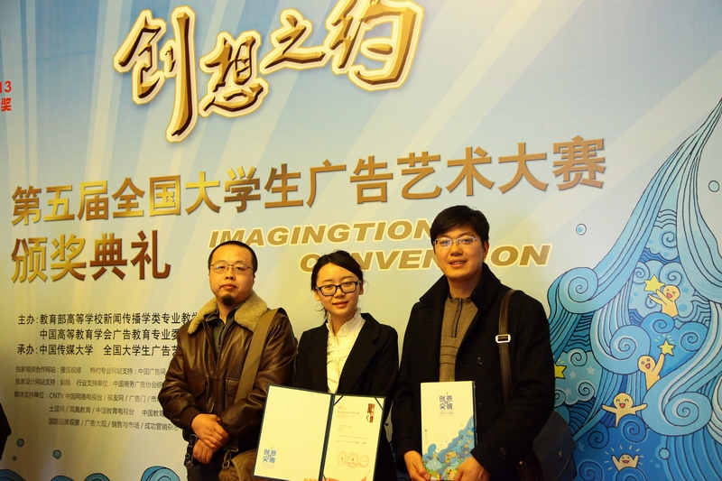 2013年11月30日,由教育部高等教育司指导的第五届全国大学生广告大赛颁奖典礼在全国政协礼堂举行,我校由王旭东老师指导的10100442班宋雨的《晋善晋美》海报获得全国三等奖,田维飞老师指导的10100441班宋可可的《晋善晋美—吉祥物》,10100442班的史钰荣、王广镇的《晋善晋美—云冈石窟》海报获得全国优秀奖。本次大赛山西省共获全国三等奖三项,全国一、二等奖我省均未获得,我校获得三项国家奖项位居山西省前茅,无论是数量还是质量上我校均取得历史性突破。