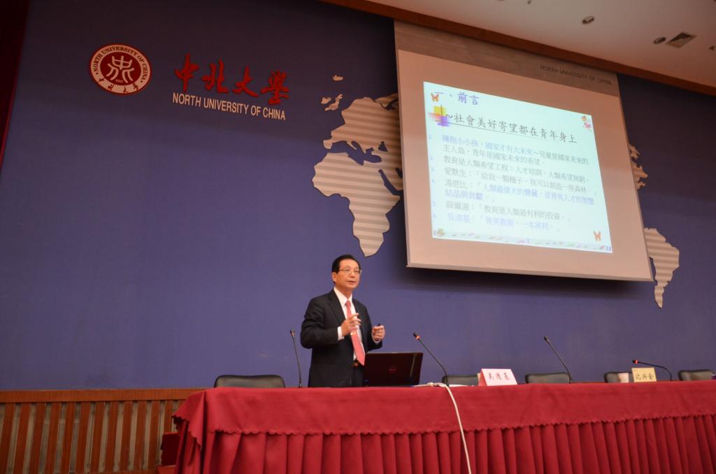 报告中,吴清基教授从五个大方面谈了自己对人才教育培养的见解。一是加强两岸高校交流合作。吴教授提出希望两岸学生的交流范围能够更加广泛,以此促进教育文化的融合与发展。二是社会美好寄望都在青年身上。吴教授列举出一些名人名言强调注重人才教育培养的重要性,“精英教育,是一本万利的投资。”他说,“人们要保有积极乐观进取的思想,人生才会更靓丽”。三是“青年的未来发展无限美好”。吴教授先给出了青年发展的两个黄金定律:IQ+EQ=成功,C=(K+S)^A(其中,C代表竞争力,K代表知识,S代表技能,A代表态度)。由此可知态度的重要性,态度决定高度。四是“给别人空间就是给自己空间,多给别人掌声也是给自己掌声”。 五是吴教授表达了自己对青年领袖的一些期许:加强工具学科的学习;培养通识基本能力;注重全人生活教育陶冶;重视服务学习、成长经验;加强艺术人文素质;重视体育运动兴趣培养;体现生命教育的实践;重视终身学习,不怕输在起跑线。