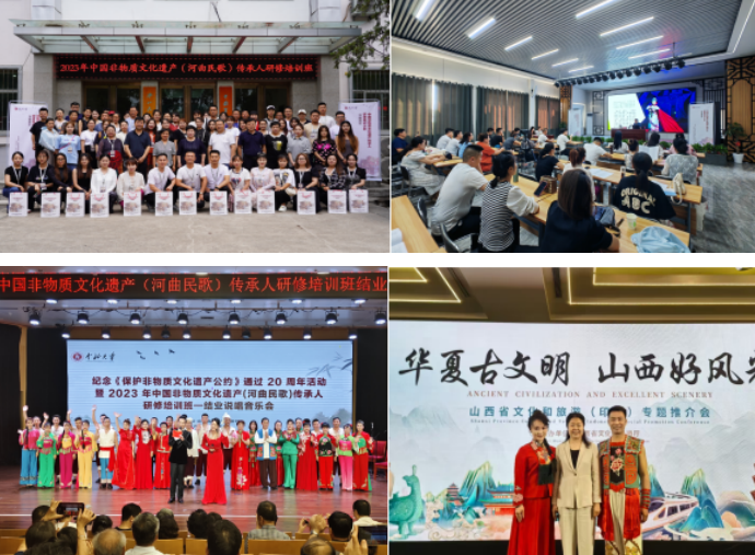 2017年以来,中北大学共承办“雕刻技艺”“家具技艺”“祁太秧歌”“河曲民歌”“孝义碗碗腔”等6期研修培训班,围绕非遗数字化保护与传承、非遗助力乡村振兴、非遗助力共同富裕等专题,累计培训传承人近960人,其中多个培训班先后多次被文旅部评为研修培训优秀案例。