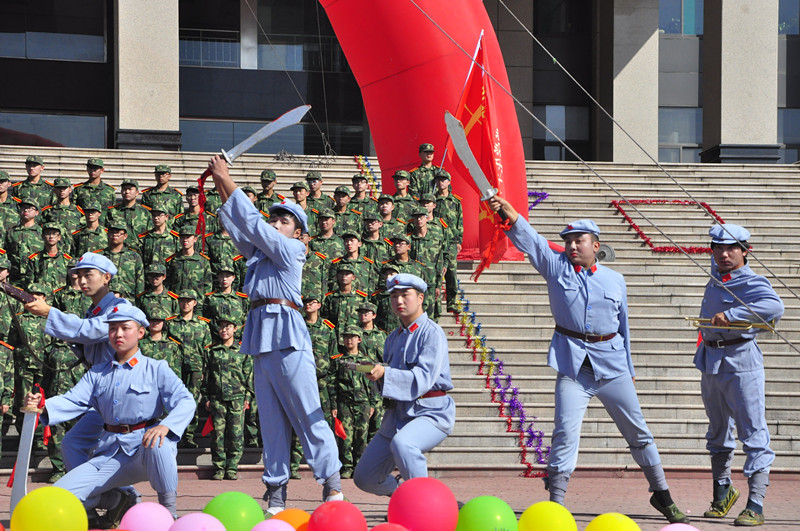 巍巍太行山高,滔滔黄河水长。早晨八点半,行知广场已坐满15级军训新生。各合唱队一遍遍进行着最后紧张的排练。九点,合唱比赛正式开始。按照要求,此次比赛由校歌《再铸辉煌》与自选歌曲两首组成。各营队合唱团成员以最高昂的热情歌唱校歌,颂扬中北的辉煌历史与太行精神,嘹亮的歌声响彻天空。自选曲《强军战歌》、《游击队歌》、《战之必胜》等经典的红色歌曲,是新一代中北人对70年前浴血沙场的革命先烈的深切缅怀与悼念,是对我党我军不战则已,战之必胜的自信,是对伟大中国梦、祖国复兴人民富强的热切希望。