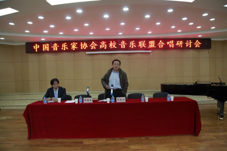 本次研讨会的主题内容紧扣合唱音准训练,在合唱实操中践行的观点和理论,以及高校音乐教师教学中的经验交流与研讨。开幕式后,由中国音乐家协会高校音乐联盟合唱委员会副会长周宝全主持召开了“关于合唱教学与排练有关的研讨与拟题”会议。与会人员就合唱教学和训练中遇到的问题与阎宝林教授和周宝全老师进行了深入交流。会议期间,阎宝林教授为大家做了“以八秒训练体系为例的音准复合训练”专题讲座。与会合唱委员会专家分别以《飞来的花瓣》、《黄昏之歌》、《垦春泥》为例,和大家一起进行了音准训练的实际训练,让老师和同学们在歌曲训练中找到解决合唱中音准问题的办法。