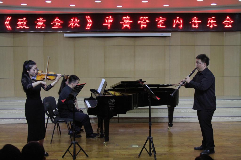 为庆祝中北大学建校75周年,9月3日晚,校庆系列专场音乐会《致意金秋》单簧管室内音乐会在英国正版365东音乐厅成功举办。担任此次演出的是我院单簧管青年教师赵煜老师、小提琴青年教师温成皓老师,特邀钢琴伴奏徐牧老师。所演奏的曲目涵盖了各个音乐时期的单簧管室内乐重要作品,具有较高的欣赏性。单簧管、小提琴与钢琴的美妙旋律交相辉映,呈现出精彩的音乐画面,使观众陶醉其中。音乐会以高超的演奏技巧,动人的艺术语言表达博得了在场校领导、观众的一致好评,在热烈的掌声中完美落幕。