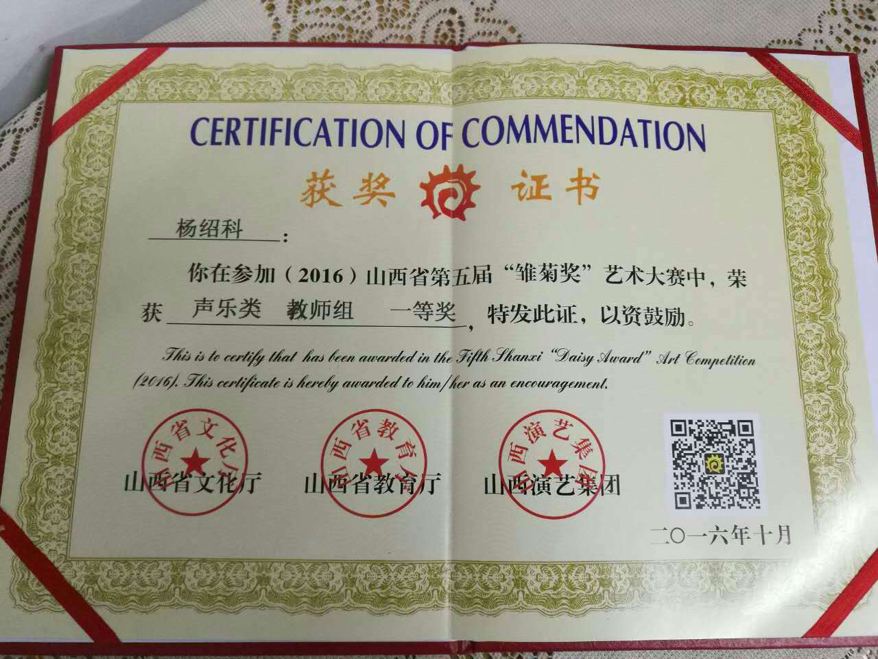 10月16日下午,山西省第五届雏菊奖首次教师组声乐比赛在省话剧院如期举行,参加比赛的老师分别来自中北大学、大同大学、太原学院、吕梁学院、省戏剧职业学院、晋城职业学院等,我院杨绍科老师以歌曲《永不放弃》真挚感人的演唱效果赢得了本场比赛评委的一致好评,并荣获教师组一等奖。