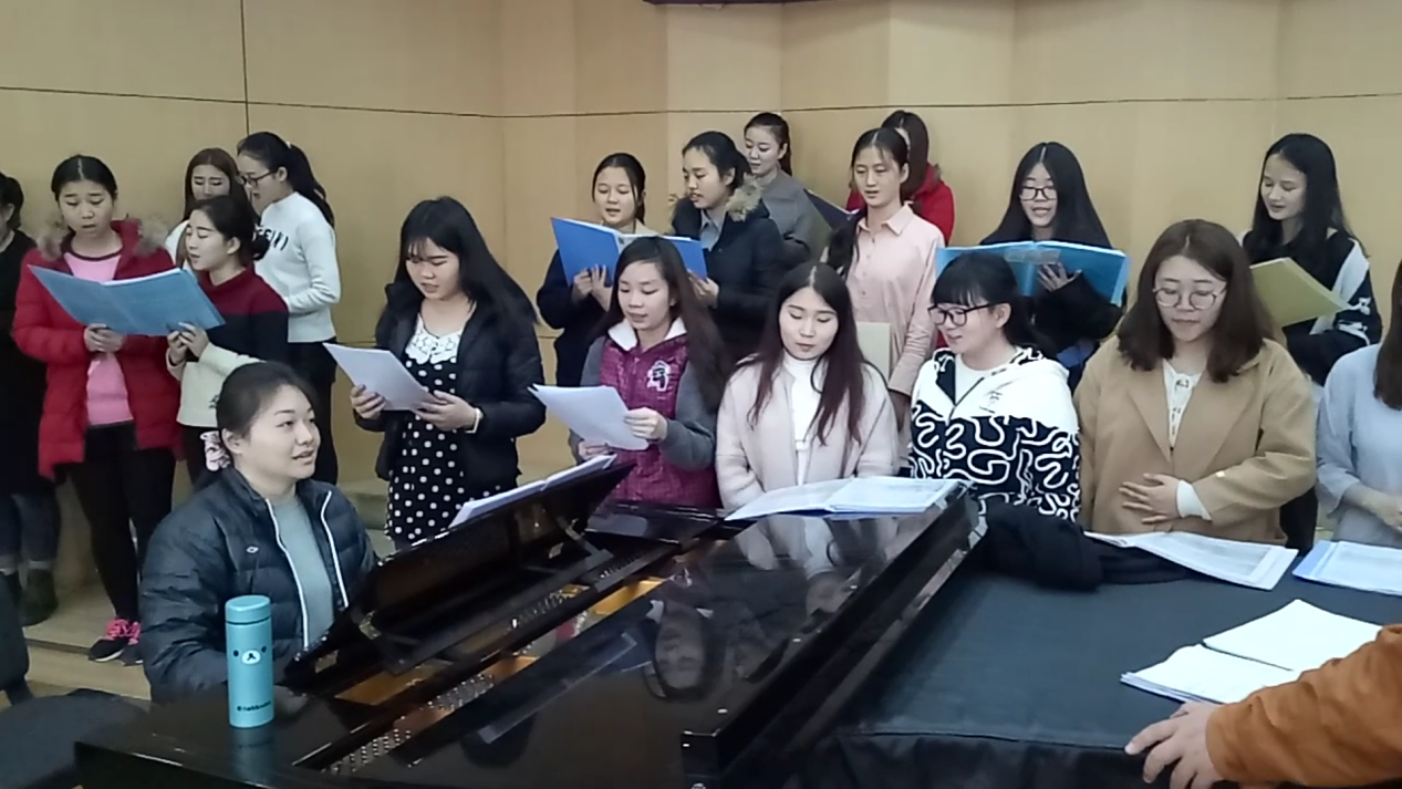 在校期间,刘敏老师分别从声乐技巧、音乐表演艺术、钢琴配器等角度对我院合唱团进行训练与辅导,刘敏老师在讲学中一丝不苟,同学们积极配合。通过为期三天的学习、排练,合唱团在演唱过程中声音、站姿、表情及作品处理风格上均有了质的提高。