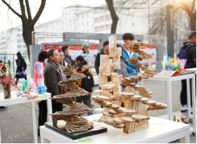 《立体构成》在三大构成中属于综合的地位,既有平面的韵律节奏,也有色彩的协调配合,再加上本身的空间与独特的形式美感,既可以做公共装置艺术,也可以加以功能变为实际产品。这次的参展作品可谓心思玲珑,巧妙成趣。所使用的材料也是别有新意,木料,塑料,铁丝等材料被做成形式感与美感并具的作品,其中不少作品还具有废物二次利用的环保功能。