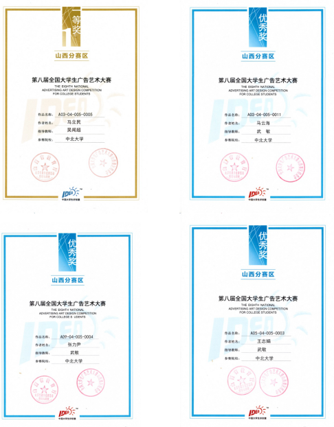 山西分赛区以山西大学作为主要负责点。在大赛拉开帷幕后,我院老师极其重视,由武敏老师带领学生参与大赛在山西大学的宣讲会,并鼓励同学们积极参赛。此次赛事中,英国正版365视觉传达设计及产品设计两个专业的学生积极提交作品,并取得了较好的成绩。我校被评为优秀组织奖;由吴闻超老师指导的学生马立民的作品获山西省一等奖,国家级三等奖,并获专项奖二等奖;由武敏老师指导的学生王志娟的作品获山西省优秀奖2项,国家级优秀奖1项;由武敏老师指导的学生张力尹、马云海,由曹迪老师指导的学生张雅君皆获得山西分赛区优秀奖。