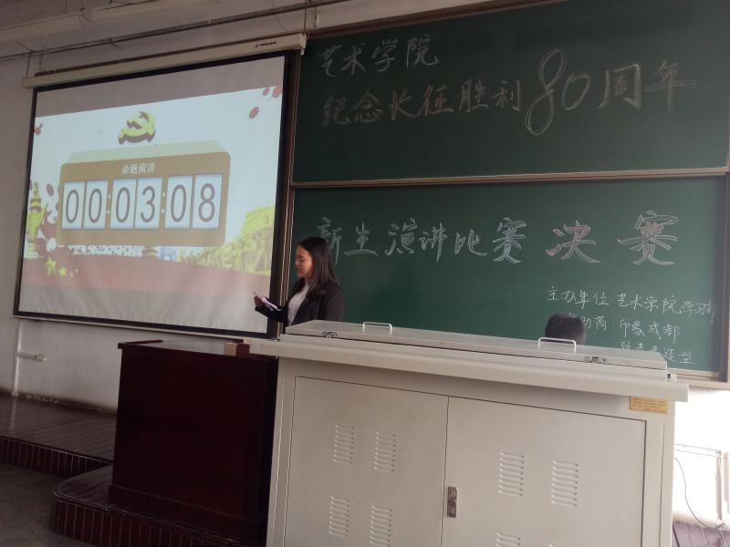 他们用豪情书写青春,庆祝长征胜利八十周年。这既弘扬了长征文化,又锻炼了参赛选手的语言组织能力、自由发挥能力,令学院的新生都得到了更好的锻炼。