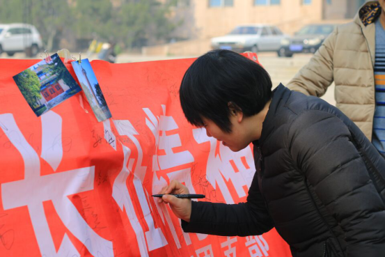 第二部分:校内宣传活动十一月七日中午我们再度在六号楼前致知广场宣传。自带画架画板,将活动照片和太原解放纪念馆简介打印贴在画板上,拉开横幅,为过往同学进行讲解,宣传太原解放纪念馆,邀请同学上前签字,活动照片以及精彩讲解吸引了大量同学前往并签名,班主任夏志丽老师也参与进来。同时,我们也赢得了广泛的肯定和赞许。