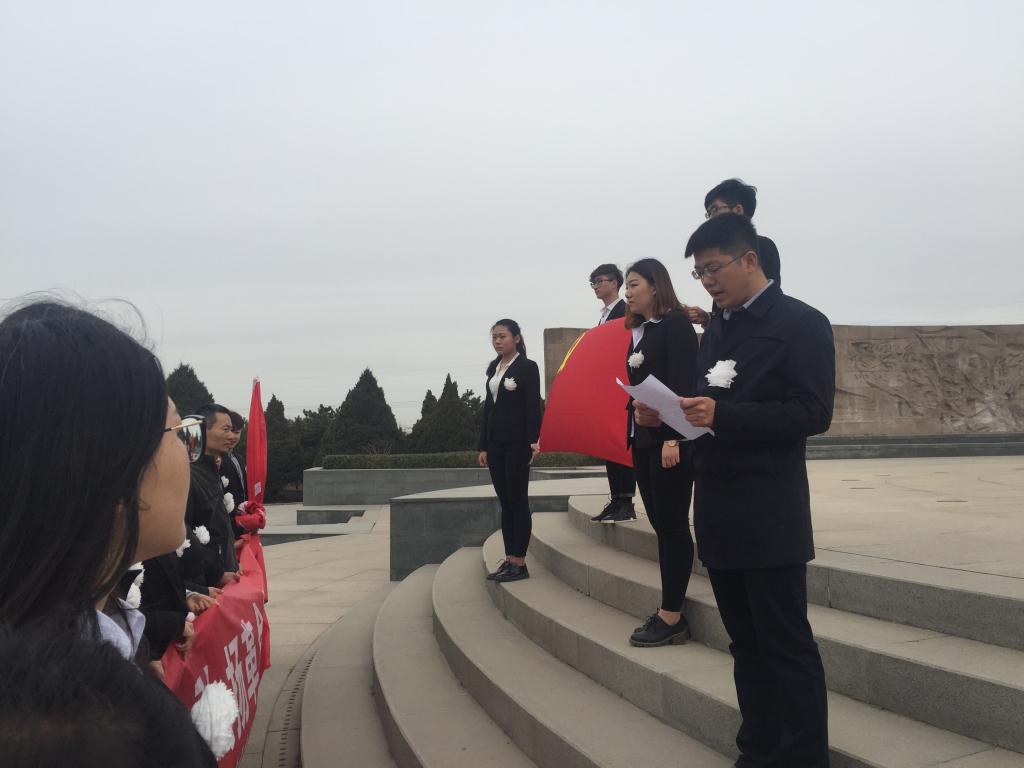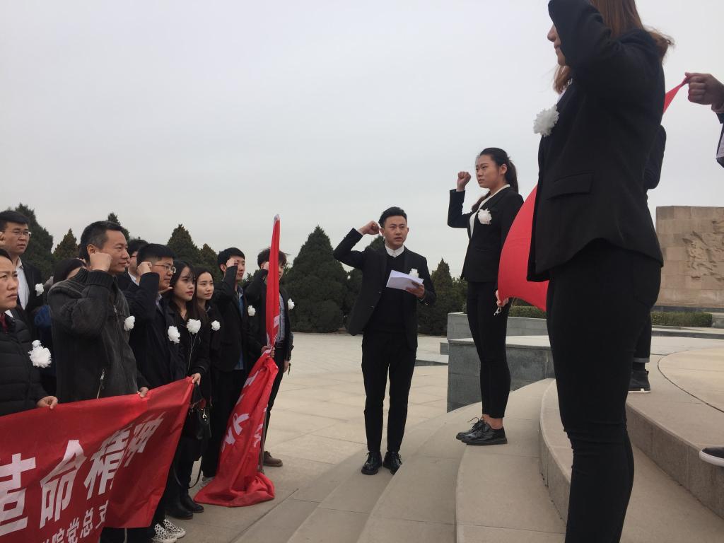 3月30日上午8:00英国正版365党总支组织师生党员前往太原市牛驼寨革命烈士陵园,进行了以“缅怀革命先烈.弘扬革命精神”为主题的扫墓活动。参加扫墓活动的全体教工党员和学生党员。