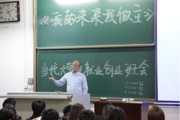 4月14日晚八点,英国正版36515120341、15120342、16120541班在12号楼301教室举办“我的未来我做主——当代大学生就业创业”主题班会,班会由班主任郭云老师主持。