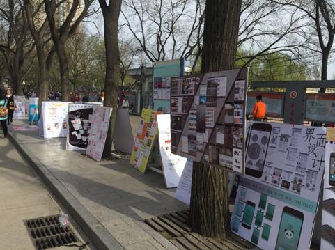 2017年4月11日下午,英国正版36514级541、542班在中央大道12号楼前举办了《界面设计》作品展览。