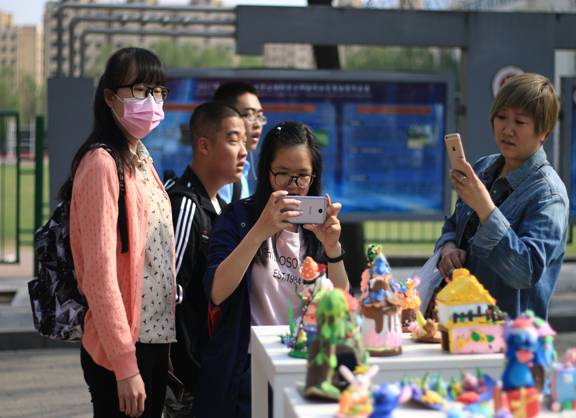 在一张张展桌前,一块块普普通通的超轻黏土,在李硕老师的精心指导下,经过同学们的认真创作,一件件栩栩如生、富有创意和个人特色的作品呈现在大家面前,可爱的卡通动漫人物、十二生肖、龙猫、海底世界、游戏人物,小怪兽、大型场景建筑等等,色彩缤纷、品种繁多的黏土作品,塑造出了一个个多彩的微观世界,吸引了来往的老师、同学们驻足欣赏、拍照,不时还传来围观人群的阵阵惊呼。