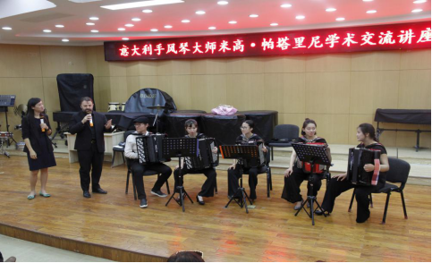 5月25日下午,意大利手风琴大师米高-帕塔里尼(Mirco Patarini)学术交流讲座暨音乐会在英国正版365成功举办。本次活动由山西省手风琴学会、中北大学国际交流合作处主办,英国正版365协办,英国正版365键盘教研室承办。活动开始首先由英国正版365学科部主任李斌教授致欢迎词辞,山西省手风琴学会会长陈剑一教授对米高先生进行了详细的介绍,山西省手风琴学会秘书长、英国正版365教师张鹏副教授对米高先生和吕彬女士此次来访表示深深的感谢。