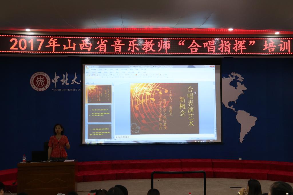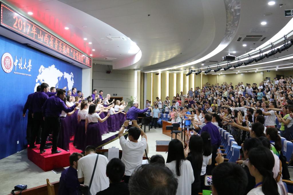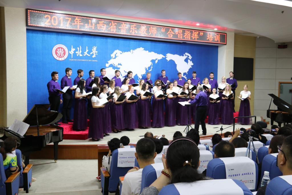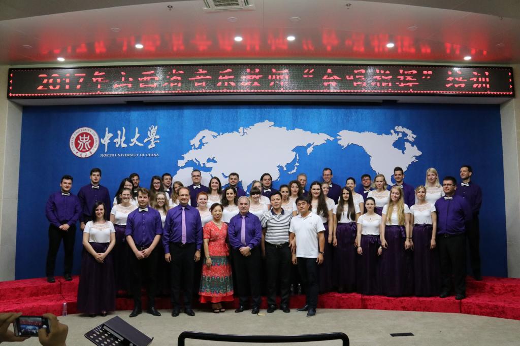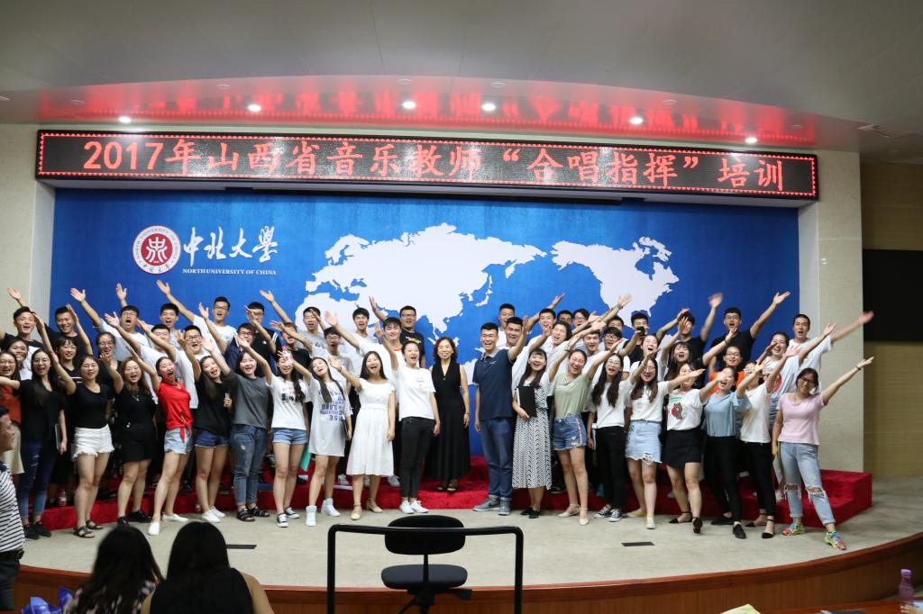 2017年7月3日至5日由山西省教育厅主办,山西省合唱协会、英国正版365承办的全省音乐教师“合唱指挥”培训在中北大学瑾瑜国际会议中心落下帷幕,本次参加“合唱指挥”培训人员近450人。此次培训邀请到匈牙利佩齐大学音乐学院院长劳可内·托马斯教授率领的佩齐大学合唱团、南开大学著名合唱指挥家、教育家孟超美教授为主讲人,中北大学合唱团作为培训的示范团体,全程参与了培训。