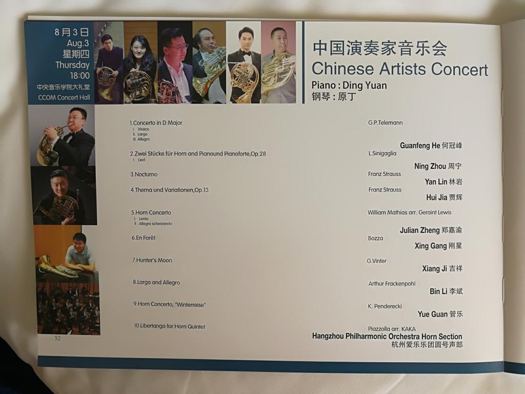 2016慕尼黑ARD音乐大赛获奖者;Cong Gu顾聪,德国莱茵国家爱乐乐团圆号首席,众多国际比赛获奖者;Yu-Hui Chuang莊于輝,德国柏林音乐厅交响乐团低音圆号,柏林Hanns Eisler音乐学院圆号导师;Tsutomu MARUYAMA丸山勉,日本武藏野音乐大学圆号教授,日本圆号协会执行主席;Lin Jiang江蔺,香港管弦乐团圆号首席。