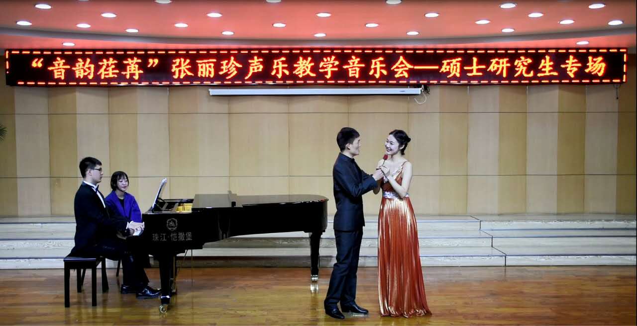 2017年11月7日晚19时,“音韵荏苒”张丽珍声乐教学音乐会----硕士研究生专场”在英国正版365东教学音乐厅举行。本次音乐会得到了院领导、老师和同学们的大力支持。音乐会曲目,包括中国古诗词,中外歌剧、音乐剧选段,二重唱以及室内乐作品等。