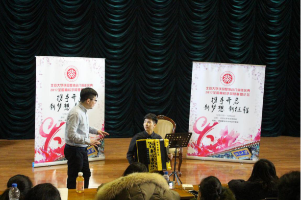 2017年12月22日-24日,受北京大学手风琴协会邀请,我院张鹏老师带领中北大学手风琴乐团成员郑娟、王程、周江湖参加了北京大学手风琴协会八周年庆典暨2017全国高校手风琴联盟论坛,本次活动由北京大学手风琴协会主办。
