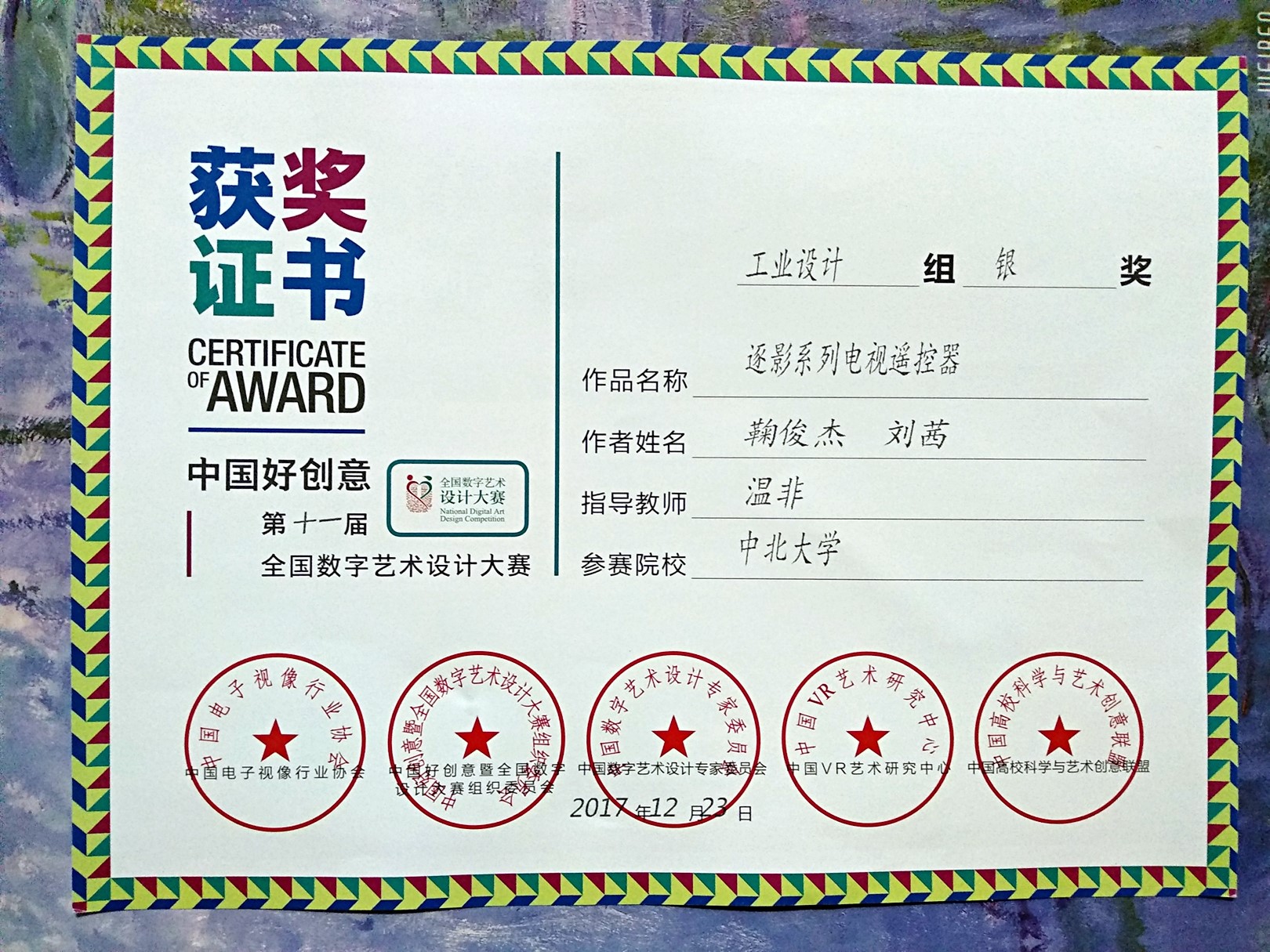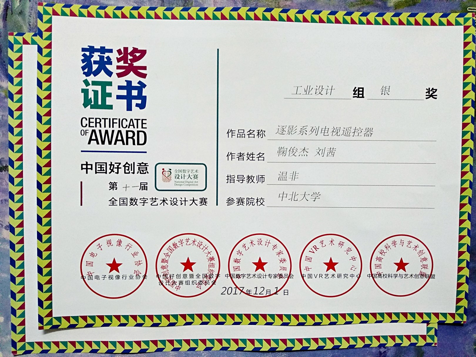 温非老师秉承着原创设计、激发个性化、创意思维的宗旨,带领着15级产品设计专业的鞠俊杰和刘茜同学参加了这场创意性比赛。在温非老师细心地指导下,学生们努力的通过研究用户使用习惯、应用场景、人机工程学和最新遥控产品科技,对电视遥控器及应用场景进行创新设计。共同设计出“逐影系列遥控器”。作品不仅突出了创新性和前瞻性,而且还突出了健康的主题。既能够对未来科技的发展做出有依据的预见,又能由此依据对产品做出可行性设计,能够体现人性化需求,通过设计提升用户体验。