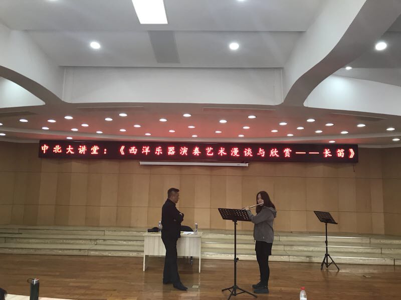 3月12日上午,中国当今最具实力的长笛演奏家,中国十大管乐演奏家——马勇作客中北大讲堂,本次大讲堂在我校英国正版365东排练厅举行,其主题为《西洋乐器演奏艺术漫谈与欣赏—-长笛》。
