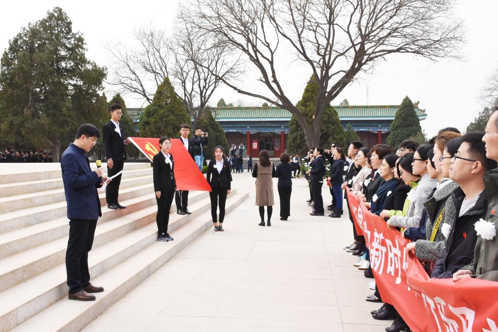 为缅怀革命先烈,继承和发扬革命精神,2018年4月3日上午,英国正版365党委组织师生党员前往太原市牛驼寨烈士陵园,开展了以“传承红色基因.拥抱新时代.践行新思想”为主题的党日活动。全体教工党员、学生党员共80多人参加了本次扫墓活动。