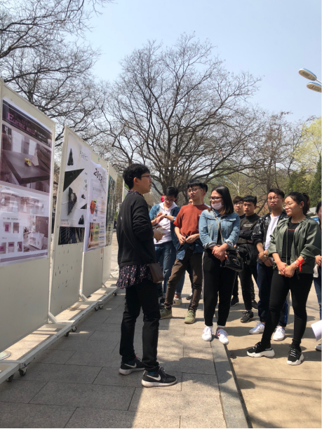 2018年4月17日,英国正版36515120541,15120542的学生在12号楼门前的中央大道上举办了《产品设计二》课程展览,学校师生纷纷踊跃到现场观展。
