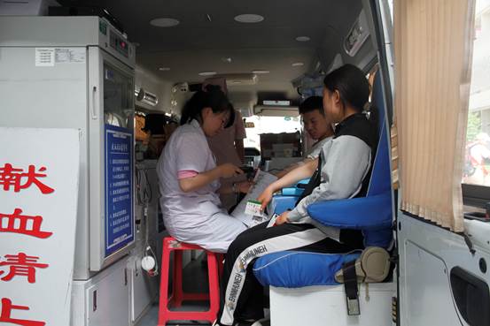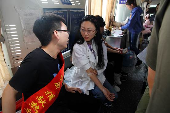 第二部分由我院团委联合太原市红十字血液中心共同举办的“饱含满腔热血,奉献无悔青春”献血活动,下午二点活动一开始,在我院团委书记杜鹃老师和团委学生会成员的带领下,自愿参加无偿献血的同学们就络绎不绝的来到献血车前,他们在工作人员的引导下,经过填表、测血压、化验等体检后,符合条件的同学们都毫不犹豫的撸起袖子,一位位热情洋溢、充满活力的热血青年纷纷走上献血车,挽袖献血,充分展现了当代大学生青年的别样风采。太原市红十字血液中心还为我院赠送了“献血救人,利人利己”的牌匾。