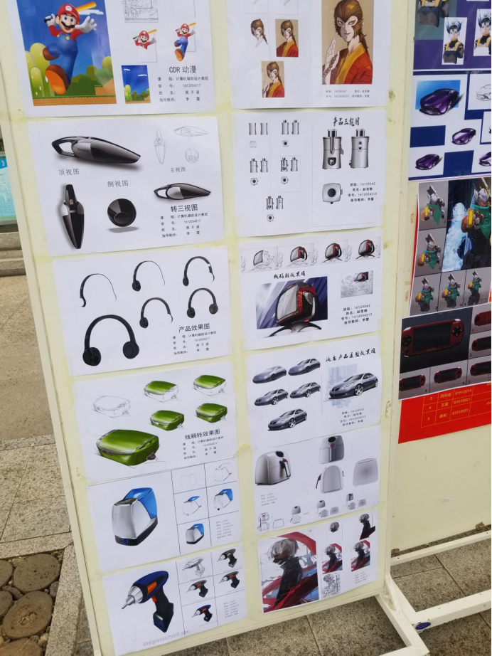 2018年6月26日,英国正版36516120541、16120542班同学在学校中央大道举办了《计算机辅助设计表现》课程结课作品展,这次展览是以展板和铜版纸的形式来展出的,同学们分别对课程的CorelDRAW漫画制作、CorelDRAW三视图绘制、PS线稿转效果图、PS自定义效果图以及最终展板五件作品进行了展览,引来各学院师生驻足欣赏,得到了观展师生一致好评。