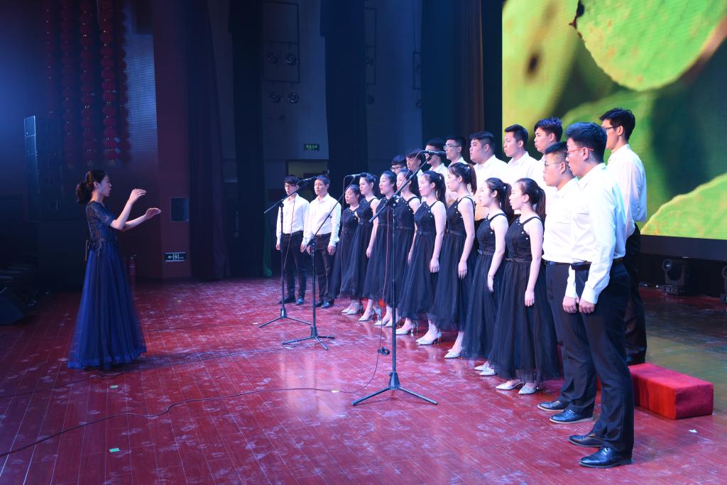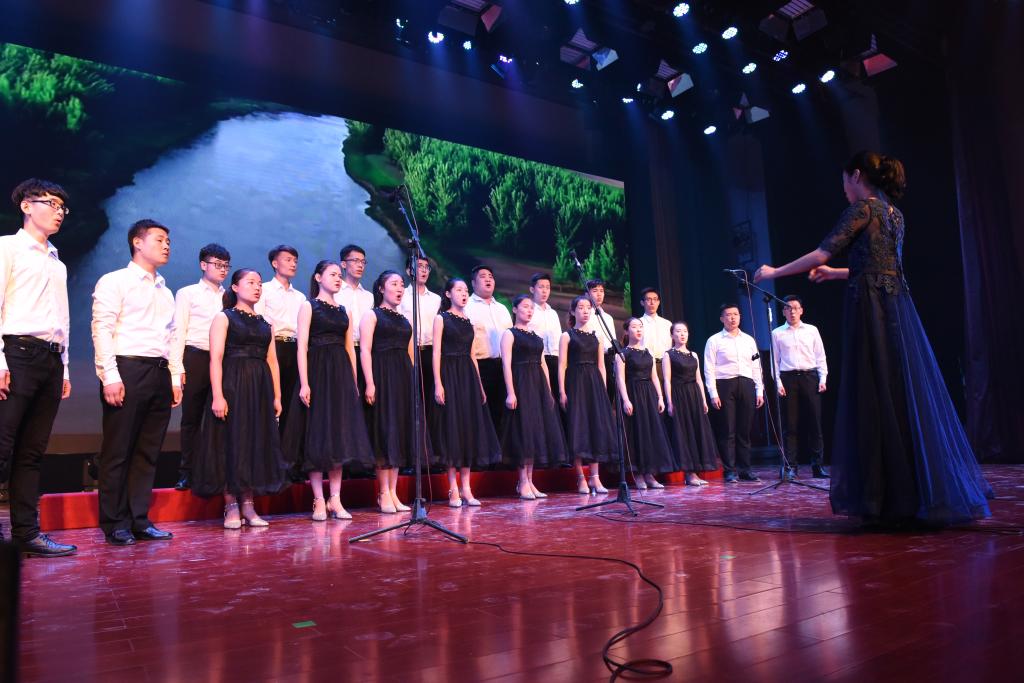 中北大学合唱团有幸被邀请参加此次演出,合唱团成员演唱了《让世界都赞美你》,真挚的表演赢得了现场领导与观众热烈的掌声。