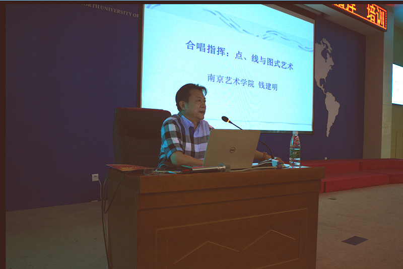钱建明教授作为此次培训的主讲专家,主要从合唱音乐、音场等方面入手,重点对指挥手势中的“点”“线”发生、运动及其图示变化进行了深入的讲解。由中北大学合唱团作为示范团体进行合唱艺术歌曲实操训练,并以《牧歌》、《贝加尔湖畔》、《蓝色多瑙河》、《雪花》、《让世界赞美你》、《闲聊波尔卡》为例进行讲授。当晚由英国正版365研究生、中北大学合唱团、与会学员共同完成合唱艺术作品交流互动音乐会。学员们踊跃参加指挥,纷纷表示此次培训受益匪浅。