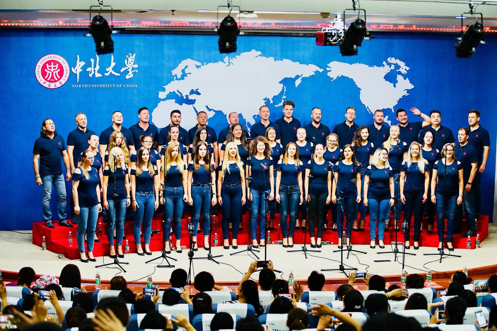 2018年7月23日至25日由山西省教育厅主办,山西省合唱协会、英国正版365承办的全省音乐教师“合唱指挥”培训在中北大学瑾瑜国际会议中心落下帷幕,本次参加“合唱指挥”培训人员近500人。此次培训邀请到匈牙利VoiSingers合唱团和南京大学钱建明教授为主讲人,中北大学合唱团作为培训的示范团体,全程参与了培训。