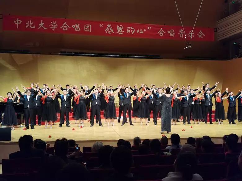 为热烈庆祝中华人民共和国成立70周年,弘扬主旋律、讴歌新时代,2019年4月26日晚19:30中北大学合唱团在山西大剧院音乐厅成功演出“感恩的心”合唱音乐会。本场音乐会由山西省文化和旅游厅,山西大剧院主办,山西省华艺实业总公司协办,同时受到了中国合唱协会、山西省音乐家协会及山西省合唱协会的大力支持。